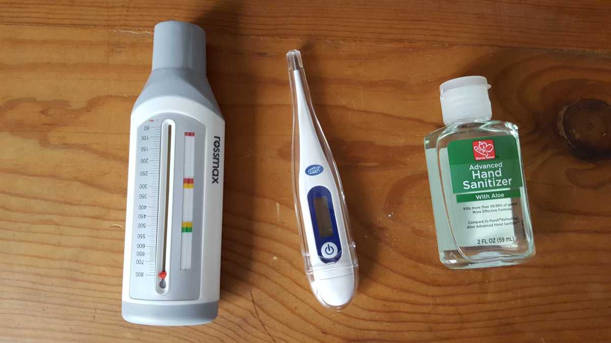 I had a brief bout of exacerbated asthma during the windier days during storms Ciara and Dennis, so I purchased a peak flow meter (the thing on the left of the photo) so that I could determine if my discomfort was an annoyance or something I actually needed to worry about. I’ve encouraged Barry to use it (with cleaning before and after, of course) to determine his baseline levels. Today, we purchased a thermometer. Just in case. It could be useful to objectively measure what’s going on should we feel poorly.
